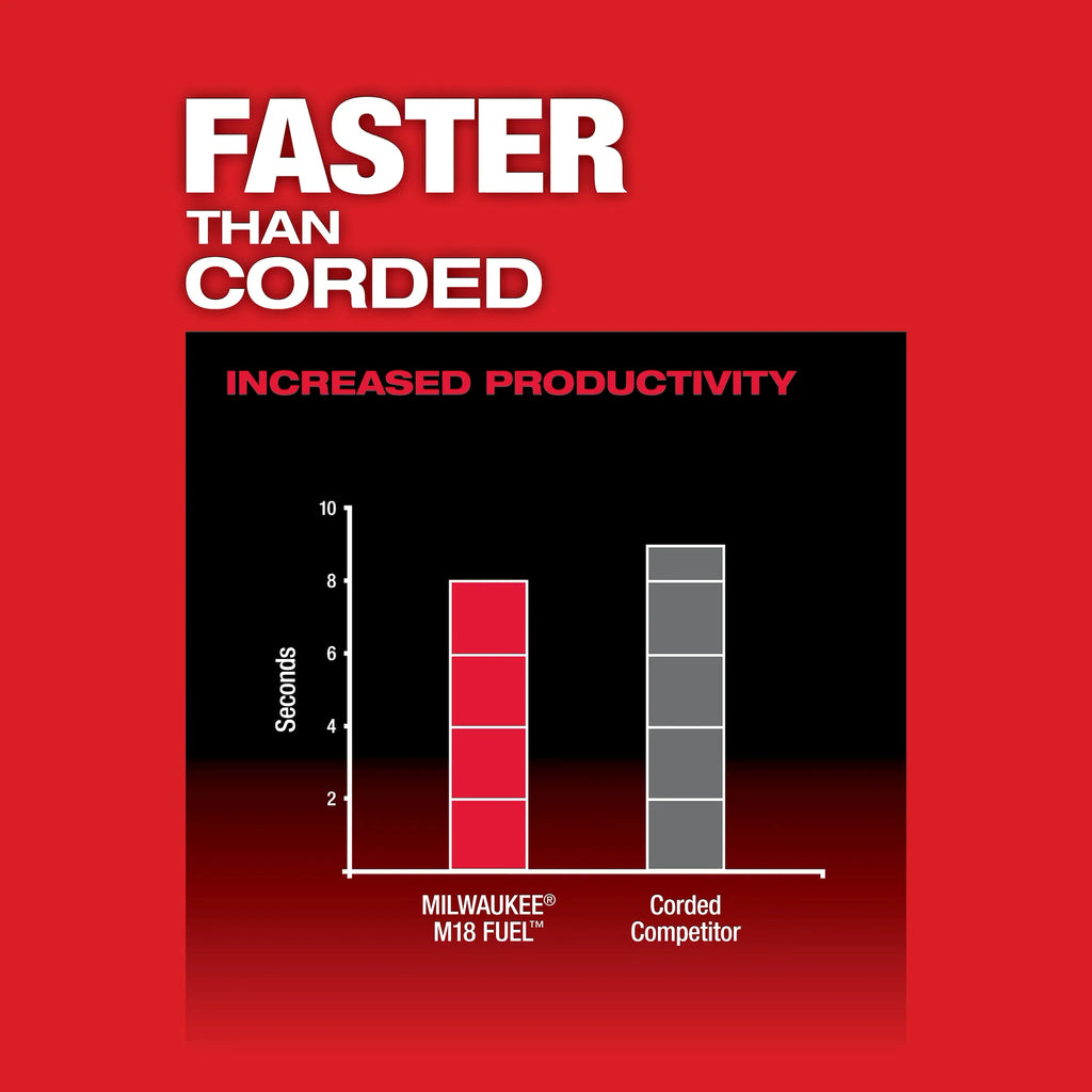 Our M18 Fuel™ 1-1/2” Magnetic Drill Drills Faster Than The Number One Corded Competitor, Delivers The Strongest Magnetic Hold On 1/4” Steel Providing A Safer Drilling Environment In This Material, And Drills Up To (76) 13/16” Holes Per Charge. The M18 Fuel™ 1-1/2” Magnetic Drill Delivers Safer Drilling On ¼” Steel By Providing The Industry’S Strongest Holding Force On This Material. By Utilizing Permanent Magnets, The Magnetic Base Operates Without Electricity; Ensuring That The Magnet Does Not Deactivate If The Battery Is Drained. Equipped With Auto-Stop Lift-Off Detection, Power To The Motor Is Automatically Cut If Excess Rotational Motion Is Detected While Drilling. Powered By A Milwaukee® Powerstate™ Brushless Motor, Both Drills Are Faster Than Their Corded Counterparts And Deliver The Same 1-1/2” Annular Cutter Capacity. Redlink Plus™ Intelligence Is The Most Advanced Electronic System On The Market, Preventing Damage To The Tool And Battery Caused By Overloading Or Overheating. The M18™ Redlithium™ Forge™ Xc8.0 Battery Packs Deliver High Output™ 12.0 Power In A Smaller Size, High-Speed Cooling For Less Downtime In High-Demand Applications, 35-Minute Supercharge To 80%, And The Longest Life Vs Redlithium™ Batteries. The M18 Fuel™ 1-1/2” Magnetic Drill Delivers Power And Portability For Tough Drilling Applications.